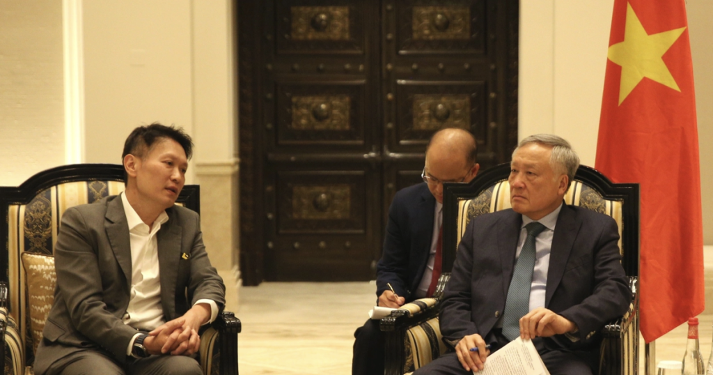 Phó thủ tướng thường trực Nguyễn Hòa Bình (phải) tiếp Tổng giám đốc Binance Richard Teng, nhân chuyến công tác tại UAE, hôm 24.9