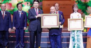 Chủ tịch nước Lương Cường trao danh hiệu Anh hùng Lao động cho ông Vũ Hữu Lê. Ảnh: PV Sự...