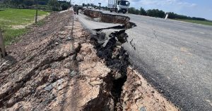 Sự cố sụt lún khu vực cầu Hòa Bình, tỉnh Tây Ninh xảy ra hồi tháng 5/2025 - Ảnh: Mỹ...