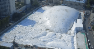 Mới đây, hình ảnh và video về một "quả bóng" trắng khổng lồ che phủ hoàn toàn một công trường...
