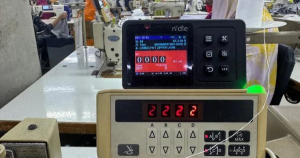 Máy móc kiểm soát con người Màn hình sáng lên cảnh báo màu đỏ trên máy khâu của người phụ...