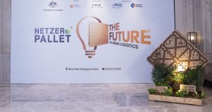 Phiên bản pallet bằng xơ dừa do VN sản xuất đang được thí điểm trong hệ thống kho tự động...