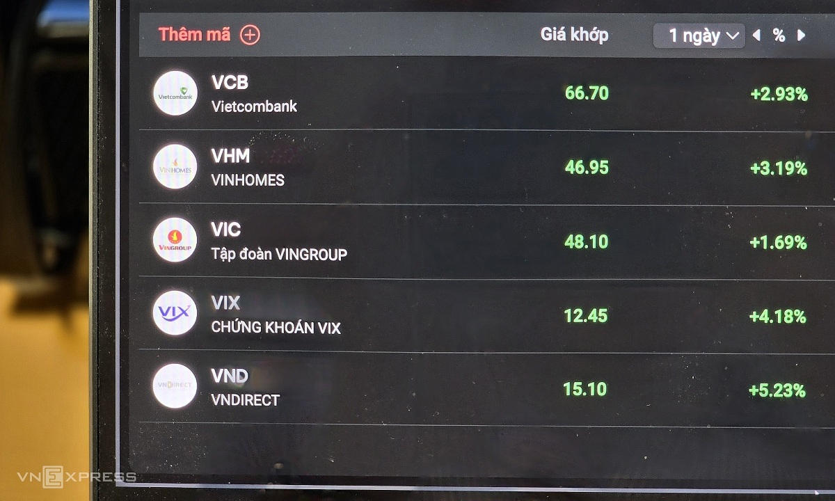 Ngoài ra, thị trường còn ghi nhận một số đại diện thuộc nhóm chứng khoán có diễn biến tích cực như VIX và VND. Hai mã này đóng cửa trên tham chiếu lần lượt 4,2% và 5,2%.