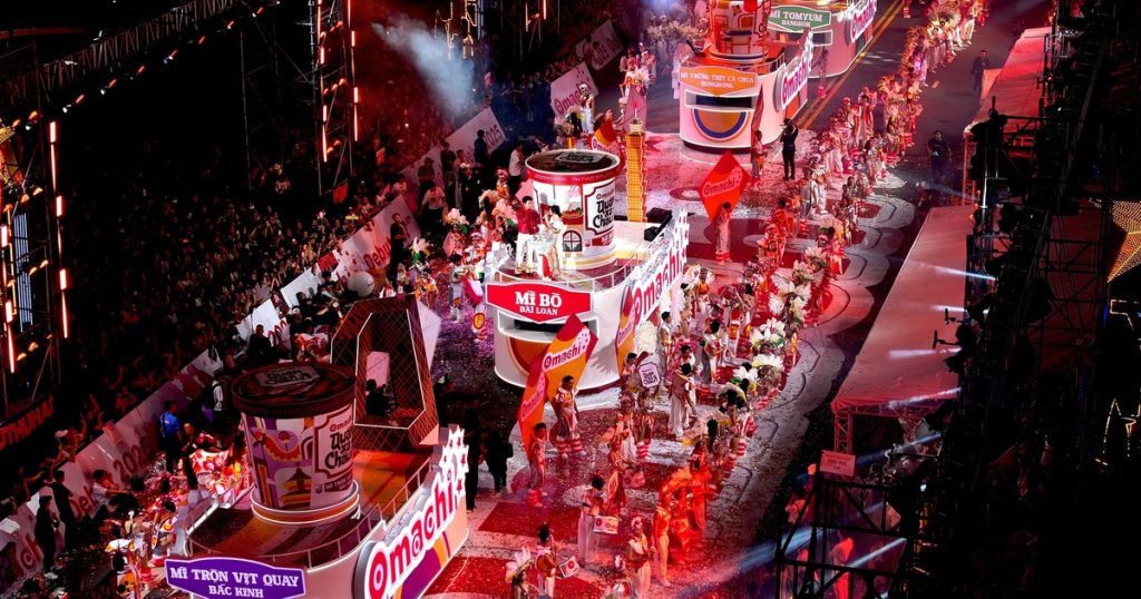 Chương trình diễu hành nghệ thuật “Omachi Debut 2025 – Quán Xá Châu Á” thu hút hàng chục nghìn người xem tại trung tâm quận 1 – TP.HCM với màn diễu hành hoành tráng đến từ 350 vũ công chuyên nghiệp, 5 xe diễu hành khổng lồ đại diện cho 5 món ngon đến từ 5 nước trong bộ sưu tập “Quán Xá Châu Á” mới của Omachi. Người xem được mãn nhãn khi tận mắt chứng kiến hàng chục bộ cánh khổng lồ sải bước cung đường Đại lộ Lê Lợi dài đến 250m, các tiết mục ánh sáng được dàn dựng công phu và màn bắn pháo giấy, pháo hoa rực rỡ sắc màu. Sự xuất hiện và trình diễn cực nóng bỏng của đại sứ thương hiệu HIEUTHUHAI khiến cho không khí tại “Omachi Debut 2025: Quán Xá Châu Á” bùng nổ hơn bao giờ hết.