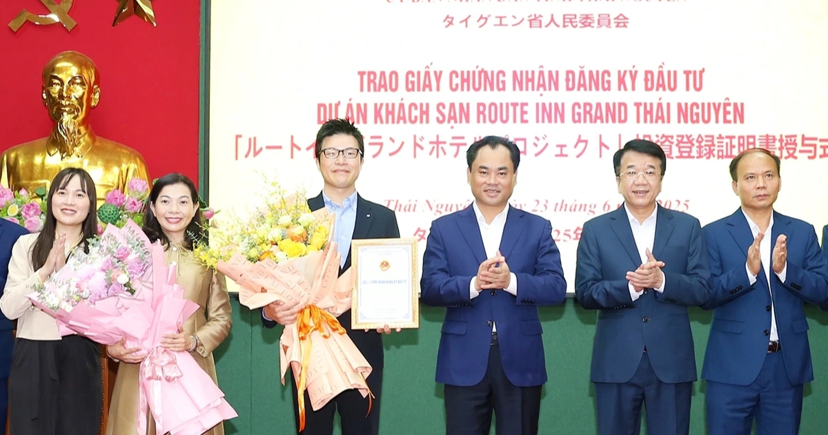 Ngày 23.6, UBND tỉnh Thái Nguyên đã trao chứng nhận đăng ký đầu tư Dự án khách sạn Route Inn Grand Thái Nguyên cho Công ty TNHH Một thành viên Route Inn Thái Nguyên – doanh nghiệp có 100% vốn đầu tư từ Tập đoàn Route Inn Japan (Nhật Bản).
