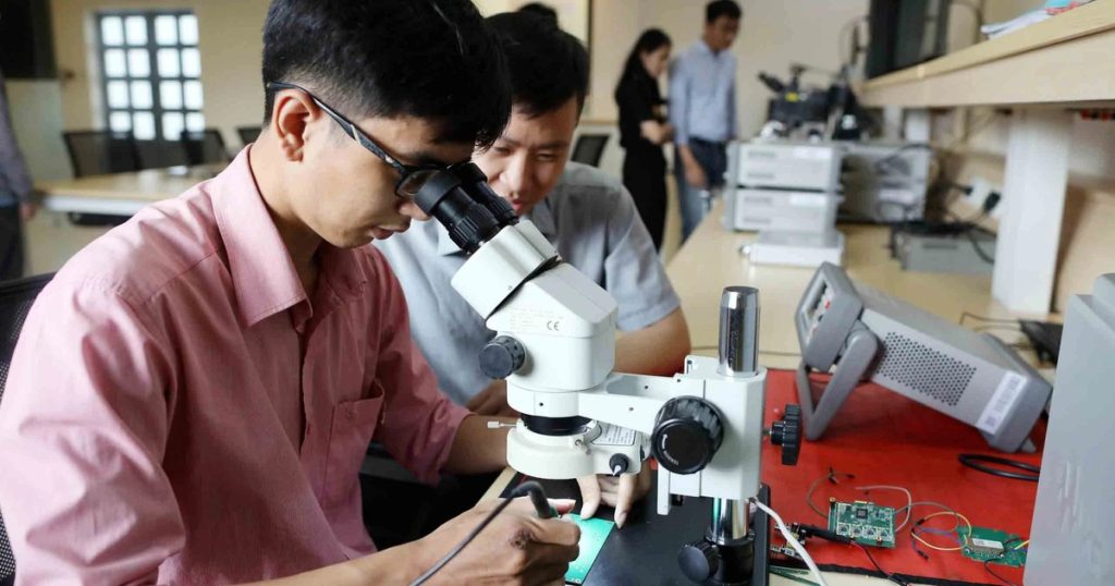 Khi có nguồn nhân lực chất lượng cao thì mới đủ sức phát triển KH-CN và tạo nên động lực phát triển mới. Trong ảnh: Giảng viên, sinh viên tại phòng thí nghiệm vi mạch và hệ thống cao tần, Trường ĐH Bách khoa TP.HCM