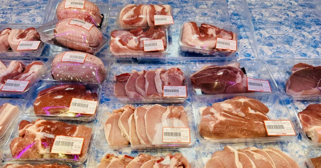 Do giá heo hơi đứng yên nên tại thị trường TP.HCM, giá một số sản phẩm thịt ít biến động. Chẳng hạn, đuôi heo 232.000 đồng/kg, cốt lết 115.000 đồng/kg, thịt đùi 145.000 đồng/kg, ba rọi 210.000 đồng/kg, ba rọi rút sườn 253.000 đồng/kg, giò heo rút xương 156.000 đồng/kg, nạc dăm 190.000 đồng/kg…