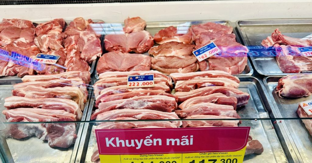 Tại TP.HCM, giá thịt bán lẻ một số sản phẩm phổ biến như: đuôi heo 230.000 đồng/kg, cốt lết 115.000 đồng/kg, thịt đùi 148.000 đồng/kg, ba rọi 215.000 đồng/kg, ba rọi rút sườn 250.000 đồng/kg, giò heo rút xương 155.000 đồng/kg, nạc dăm 193.000 đồng/kg…
