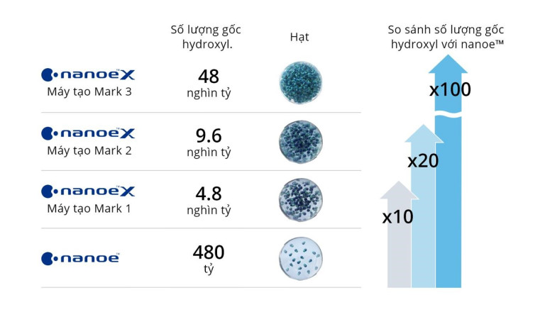nanoe™ X thế hệ 3 mới nhất có khả năng sản sinh 48.000 tỷ gốc OH mỗi giây – gấp 100 lần so với thế hệ đầu tiên. Điều này có nghĩa là hiệu quả ức chế virus và vi khuẩn được nâng cao đáng kể trong thời gian ngắn hơn, tạo ra môi trường sống và làm việc an toàn, lành mạnh.