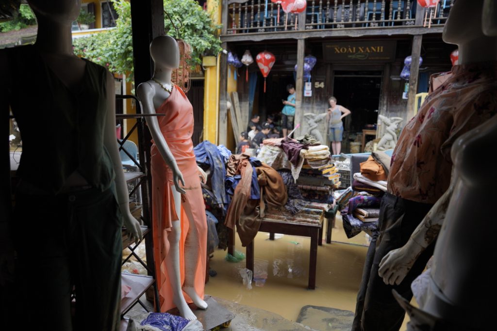 Đợt lũ lịch sử khiến hàng loạt các cửa hàng, nhà hàng kinh doanh trên những con phố sầm uất nhất phố cổ Hội An bị ngập, khi nước rút, người dân mang hàng hoá ra phơi với mong muốn vớt vát được chút tài sản.