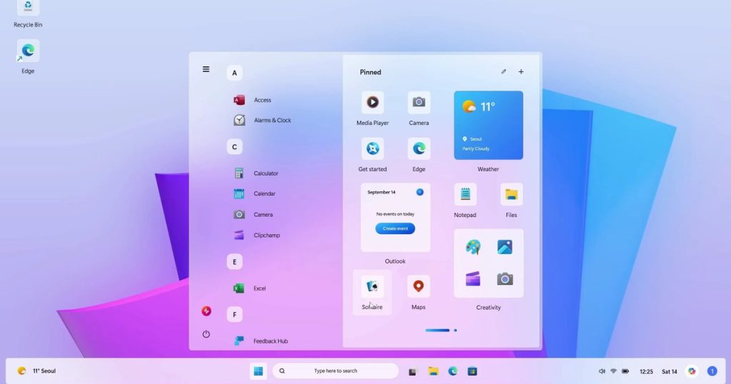 - Menu Start: Được thiết kế lại gọn gàng, mang hơi hướng của Windows 10 được yêu thích hơn là dạng lưới trung tâm của Windows 11.