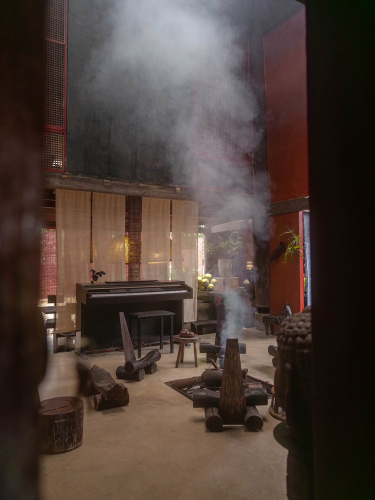 Lửa (Bếp) giống như trục của vũ trụ trong văn hóa phương Đông, nơi mọi hoạt động trong nhà đều xoay quanh “ngọn lửa” trung tâm. Lò sưởi ở giữa, vừa thiêng liêng vừa gần gũi, đâu đó thoang thoảng mùi củi, ấm áp, rộn ràng tiếng cười trẻ thơ…, đưa tâm hồn theo làn khói trở về với những kỷ niệm ngọt ngào của tuổi thơ, nơi ngọn lửa được gìn giữ từ đời này sang đời khác, nơi năng lượng dương (Dương) đánh thức mọi giác quan.