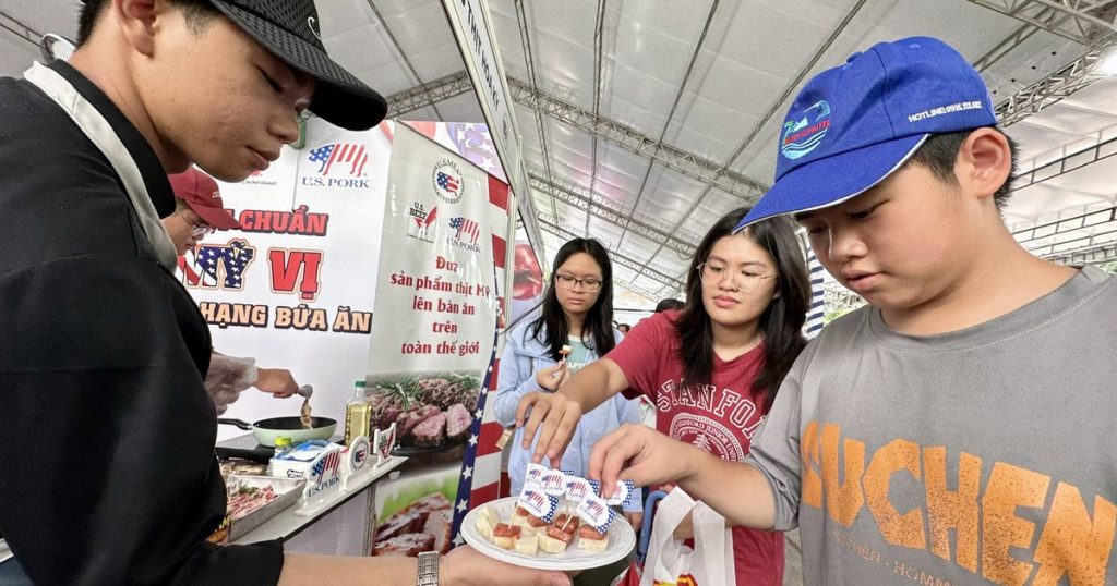 Nhân kỷ niệm 30 năm thiết lập quan hệ ngoại giao Việt Nam – Mỹ, Tổng lãnh sự quán Mỹ tại TP.HCM tổ chức chương trình “Khám phá nông nghiệp Mỹ” tại Nhà văn hóa Thanh niên (P.Sài Gòn) trong hai ngày 19 – 20.7. Đây là cơ hội để những người tham gia nếm thử nhiều loại Mỹ vị từ thực phẩm và đồ uống cao cấp nhập khẩu từ Mỹ như thịt bò, gà, heo, phô mai, khoai tây; các loại trái cây tươi gồm táo, việt quất, anh đào, xuân đào; sản phẩm trái cây sấy khô, đậu, thực phẩm đóng hộp và rượu vang… cũng như tìm hiểu thêm về các sản phẩm nông nghiệp độc đáo khác như thời trang từ bông Mỹ và các sản phẩm dành cho thú y.