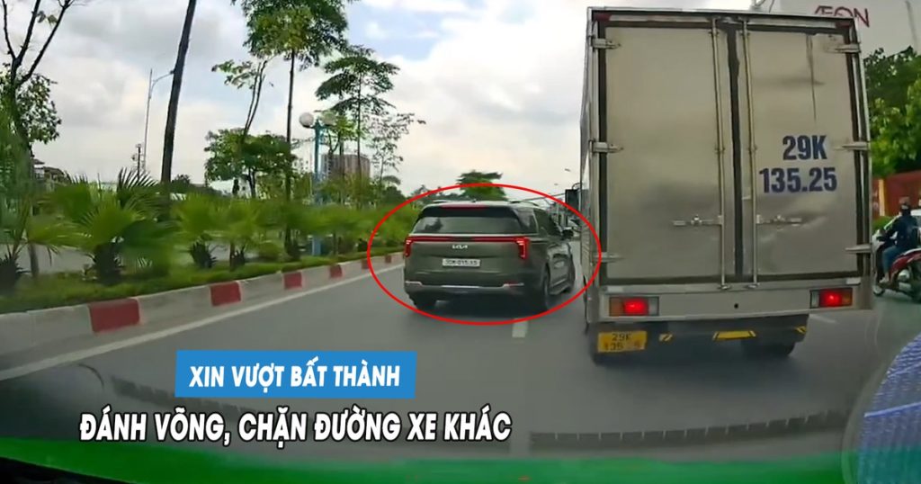 Theo hình ảnh ghi lại được từ camera hành trình gắn trên ô tô di chuyển phía sau, thời điểm nói trên, một ô tô con 7 chỗ màu xanh rêu hiệu KIA Carnival, mang biển kiểm soát 30M-015.15 đang lưu thông trên đường Cổ Linh (hướng từ nút giao Vành đai 3 về cầu vượt Cổ Linh). Khi vừa qua ngã tư giao với đường Thạch Bàn, tài xế xe con muốn vượt lên nên liên tục nháy đèn pha, yêu cầu một xe tải đang đi phía trước nhường đường nhưng bất thành.