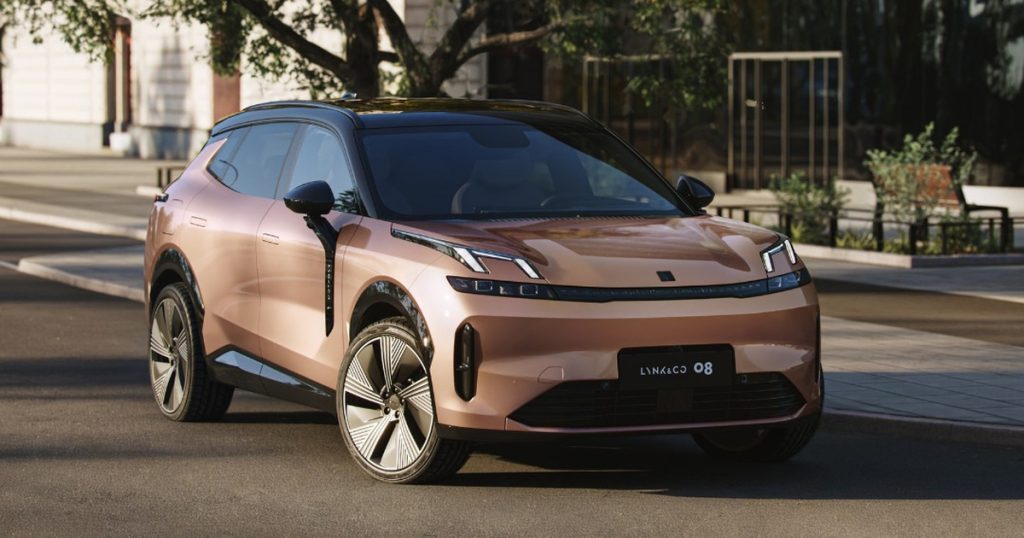 Lynk & Co 08 được phát triển trên nền tảng CMA Evo, khung gầm hợp tác giữa Geely và Volvo. Thiết kế xe mang phong cách đặc trưng của Lynk & Co với cụm đèn chiếu sáng tách rời, dải LED định vị mảnh và phần thân bo tròn, tạo cảm giác thể thao.