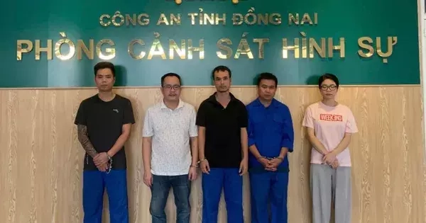 Ngày 7/6, Cơ quan Cảnh sát điều tra Công an tỉnh Đồng Nai đã ra quyết định khởi tố bị can, bắt tạm giam 5 đối tượng gồm: Nguyễn Quốc Hùng (41 tuổi), Bùi Thị Thanh Nga (34 tuổi), cùng ngụ TP.Hà Nội; Hồ Long Trí (45 tuổi, ngụ TP.HCM); Đinh Hữu Hay (34 tuổi, ngụ tỉnh Bình Định) và Thân Văn Hiệp (43 tuổi, ngụ phường Trảng Dài, thành phố Biên Hòa) để điều tra về hành vi lừa đảo chiếm đoạt tài sản.
