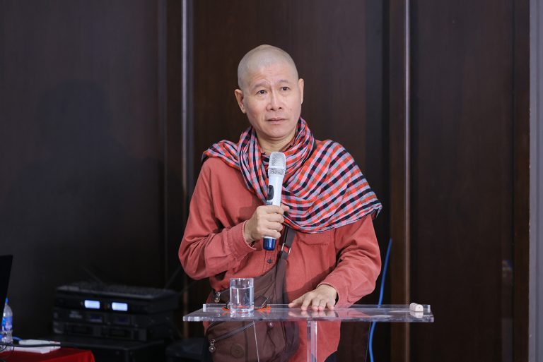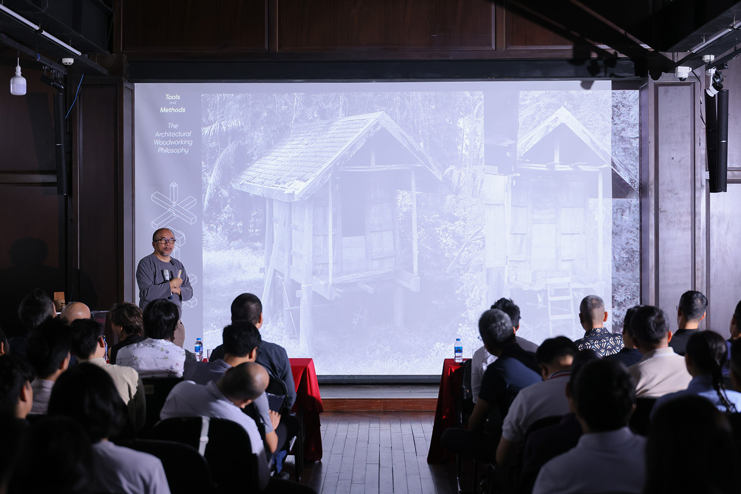 Chia sẻ tại toạ đàm, KTS Suntan Viengsima đã chia sẻ trí tuệ/sự thông thái đáng học hỏi trong công việc thực hành kiến trúc gỗ và vai trò của người thợ mộc, từ những triết lý, nguyên tắc làm việc với gỗ, đến những hiểu biết khoa học, những kinh nghiệm khi làm việc với gỗ trong hành trình làm nghề, đào tạo KTS và bảo tồn di sản của mình. Ông cho rằng: “Thông qua sự tối giản, chúng ta sẽ tìm được sự hiểu – Thông qua sự hiểu, chúng ta sẽ đạt được sự ghi nhận, giá trị của vật liệu – Thông qua sự ghi nhận, chúng ta sẽ đạt được sự thông thái của chính công việc của chúng ta.”