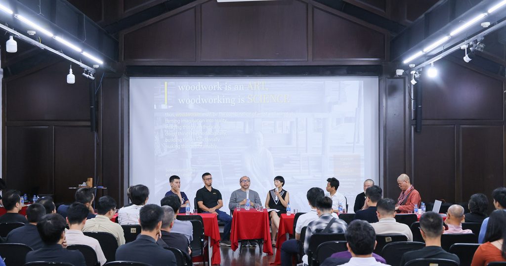 Chia sẻ tại toạ đàm, KTS Suntan Viengsima đã chia sẻ trí tuệ/sự thông thái đáng học hỏi trong công việc thực hành kiến trúc gỗ và vai trò của người thợ mộc, từ những triết lý, nguyên tắc làm việc với gỗ, đến những hiểu biết khoa học, những kinh nghiệm khi làm việc với gỗ trong hành trình làm nghề, đào tạo KTS và bảo tồn di sản của mình. Ông cho rằng: “Thông qua sự tối giản, chúng ta sẽ tìm được sự hiểu – Thông qua sự hiểu, chúng ta sẽ đạt được sự ghi nhận, giá trị của vật liệu – Thông qua sự ghi nhận, chúng ta sẽ đạt được sự thông thái của chính công việc của chúng ta.”