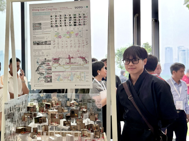 Tiếp nối tinh thần sáng tạo, Cuộc thi Thiết kế Kiến trúc TOTO 2025 ghi nhận gần 500 lượt đăng ký và gần 300 bài dự thi, cho thấy sức hút mạnh mẽ đối với cộng đồng kiến trúc trẻ. Với chủ đề “Không gian cộng hữu – Sự chuyển tiếp của các hình thái sống”, cuộc thi hướng đến tư duy đồng kiến tạo (commoning), khuyến khích khai thác những cấu trúc không gian linh hoạt, thích ứng theo thời gian và tạo nên sự chuyển tiếp mềm mại giữa các miền không gian sử dụng chung.