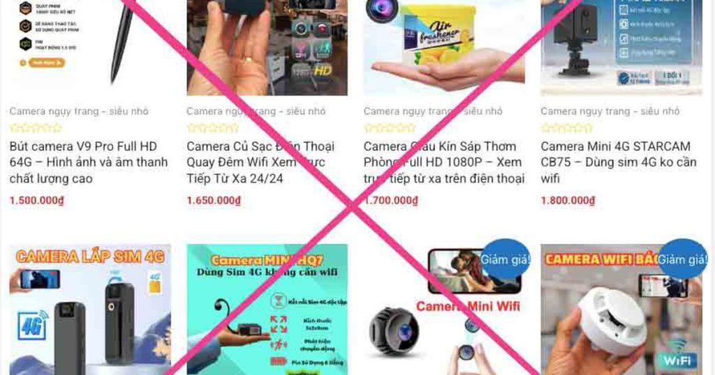 Chỉ với từ khóa “camera ngụy trang”, người dùng có thể tìm ra hàng chục trang web cung cấp thiết bị quay lén đang được quảng cáo công khai trên mạng. Trực tiếp truy cập một trang web, PV Thanh Niên ghi nhận hàng loạt thiết bị quay lén được ngụy trang dưới dạng những thiết bị thông thường như ổ cắm điện, quạt treo tường, nút áo, chìa khóa, loa nghe nhạc, sạc dự phòng… với mức giá dao động từ 1,2 – 3 triệu đồng. Trên một website khác, PV ghi nhận các sản phẩm quay lén còn được thiết kế tinh vi hơn nhằm dễ dàng đặt ở những vị trí nhạy cảm, như máy khuếch tán tinh dầu, bình hoa, hũ kem đuổi muỗi hay đèn led hoa văn.
