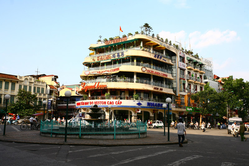 Tòa nhà “Hàm cá mập” được xây dựng từ năm 1991 đến 1993, trước đó, nơi đây là tòa nhà điều hành của xí nghiệp xe điện Hà Nội, được xây mới và thay đổi công năng làm kinh doanh dịch vụ. Công trình có mặt trước hướng ra quảng trường Đông Kinh Nghĩa Thục, mặt trái hướng ra Hồ Gươm, mặt phải giáp với phố Cầu Gỗ; với quy mô 6 tầng trên diện tích xây dựng 310m2, trong đó tầng 2 đến tầng 6 là các nhà hàng, quán cà phê. Từ khi đưa vào sử dụng đến nay, kiến trúc của công trình nhận nhiều ý kiến trái chiều từ chuyên gia quy hoạch đô thị, kiến trúc và cả báo chí, dư luận. Tên chính thức của công trình là “Trung tâm thương mại số 7 Đinh Tiên Hoàng”, nhưng ngay từ khi hoàn thành và đưa vào sử dụng, không biết từ đâu có ý kiến ví von rằng công trình trông như cái “hàm cá mập”, và thế là công trình “chết” với cái tên đó. Cho tới nay, không ai gọi nó bằng cái tên chính thức, mà chỉ nói là nhà “Hàm cá mập” thì ai cũng hiểu, cũng biết là ở đâu. Tòa nhà “Hàm cá mập” có một vị trí đắc địa ở khu vực trung tâm của trung tâm Hà Nội, có view Hồ Gươm đẹp nhất trong các công trình dịch vụ quanh Hồ Gươm. Vì lẽ đó, nơi đây là điểm đến, điểm hẹn quen thuộc của người dân Hà Nội cũng như khách du lịch. Thế nên, dù nó là “Hàm cá mập”, dù nó có bị chê xấu xí thì nó vẫn là một nơi chốn quen thuộc, là không gian quen thuộc của rất nhiều người Hà Nội. Việc phá dỡ tòa nhà này cơ bản được giới chuyên môn và dư luận đồng tình, vì nó không có nhiều giá trị kiến trúc và lịch sử, và để đẹp thêm cho Hồ Gươm. Nhưng nó đã trở thành quen thuộc nên khi không còn nữa để lại những tiếc nuối cũng là điều dễ hiểu.