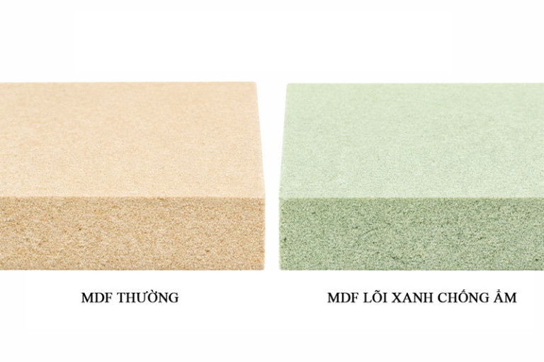 Cấu tạo bột sợi gỗ mịn nén chặt của MDF thường và MDF lõi xanh chống ẩm