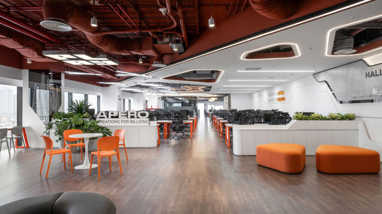 Tủ đồ được làm từ gỗ công nghiệp trong không gian nội thất văn phòng Apero Technologies Group (Nguồn: Công trình tranh giải Top 10 Awards 2025)