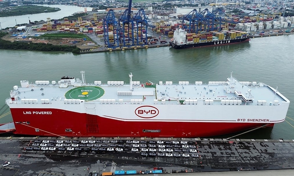 Cuối tháng 5, BYD Shenzhen – tàu chở ôtô lớn nhất thế giới, có sức chứa tương đương 20 sân bóng đá – cập cảng Itajai của Brazil.
